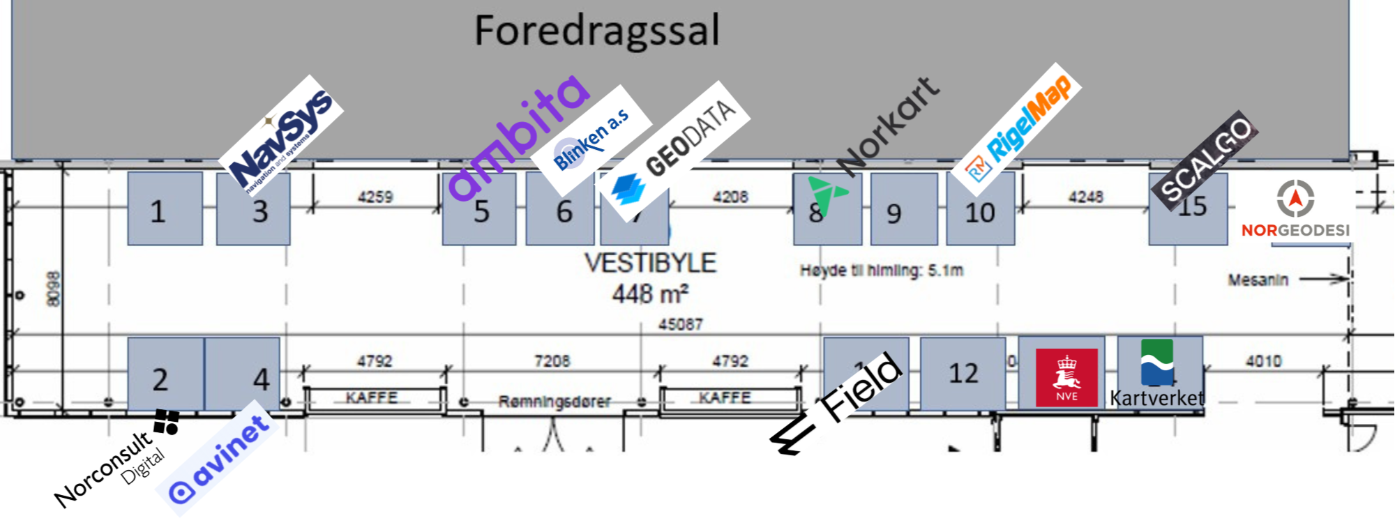 Standene er alle 3 x 2 meter og rammes inn av det utstillerne selv har med av backdrops, roll-ups og utstyr.